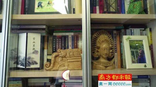 但要说这间书房最大的特点,还是书架上琳琅满目的工艺品,大多与她热爱的戏剧有关。罗丽说,自己有两大爱好,一个爱看书,一个爱旅游,每次都会带一些当地的小摆设回来,跟相应的书目摆在一起,产生呼应。